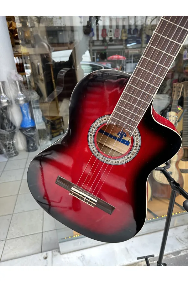 Gitar Ihlamur Ağacından yapılmıştır Sap ayar çubuğu mevcut Klavye ve eşik gül ağacı
